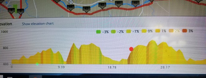 Today (Saturday) was my long bike ride day. I mapped a 47 mile route (76 km) with a goal to finish in three hours. Spoiler: I did not. Ironman Maryland is a very flat course with a good chance of wind coming from any and all directions. Hills are my nemesis ( a key detail, so remember this), which is why I chose a flat Ironman course. I hadn’t counted on the possibility of headwind. Being so close to the ocean the wind can change directions many times during the day — or so I’ve read via the race Facebook group’s comments. To prep for this I have decided to ride and train on hills to force my legs to keep moving under heavy stress.